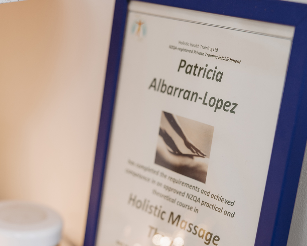 Me formé como masajista holística en Nueva Zelanda, donde aprendí la importancia de cuidarnos y regalarnos estos espacios como madres/padres, hijas/os, parejas y profesionales. Con la terapia craniosacral fui formada con el Instituto Upledger, Madrid, aunque sigo siendo una eternal y feliz aprendiz de esta terapia mágica.